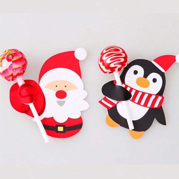 1set Random Style Christmas Candy Gift Wrapping - Santa Claus & Penguin Lollipop Wrappers, Decorative Cards & Hang Tags (50pcs)