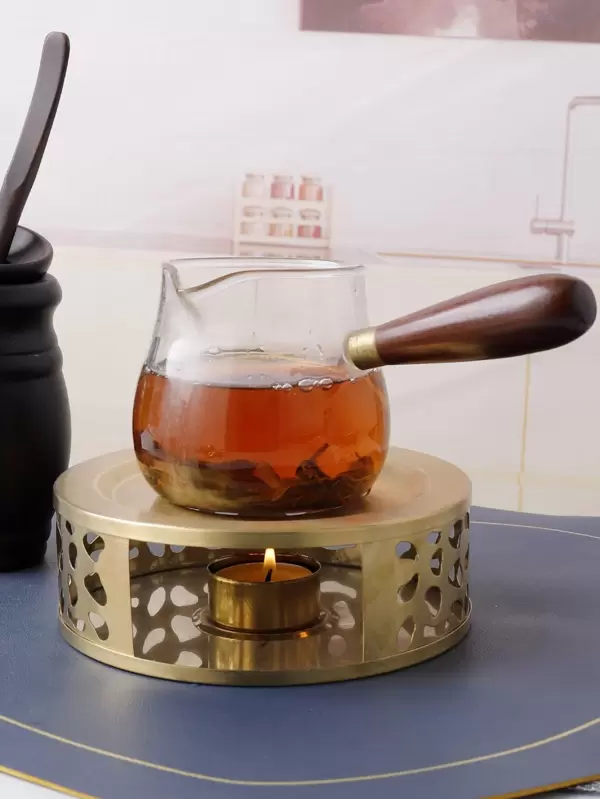 1set Stainless Steel Hollow Out Tea Insulation Stove, Minimalist Golden Flower Tea Base For Home