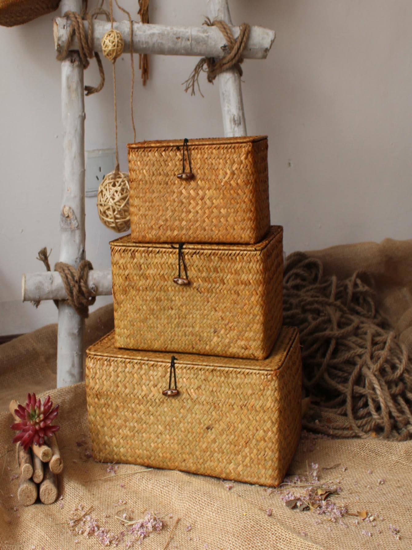 1set Straw Braided Storage Basket, Minimalist Desktop Storage Basket For Home