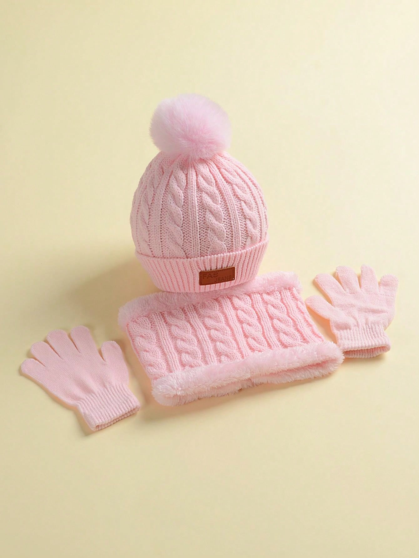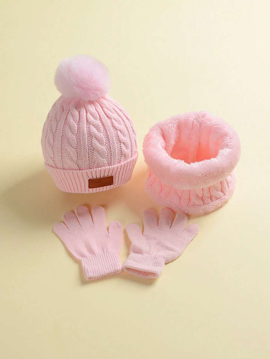 1set Unisex Hat Scarf Gloves Set With Single Pom, Twist Pattern Knit, Suitable For 2-5 Years Old Children For Daily Wear And Winter Warmth