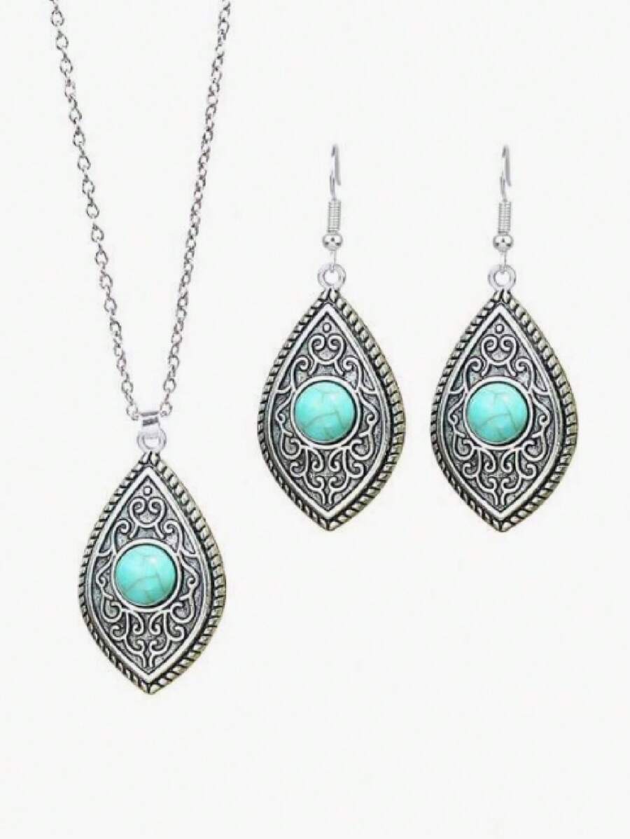 1set Vintage Style Women'S Earrings And Necklace Set