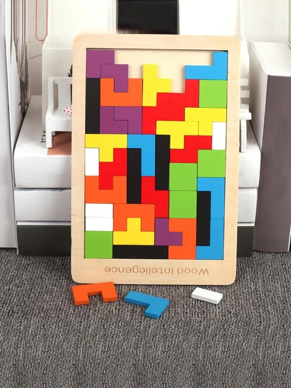 1set Wooden Puzzle Block, Modern Color Block Puzzle Block Toy For Kids
