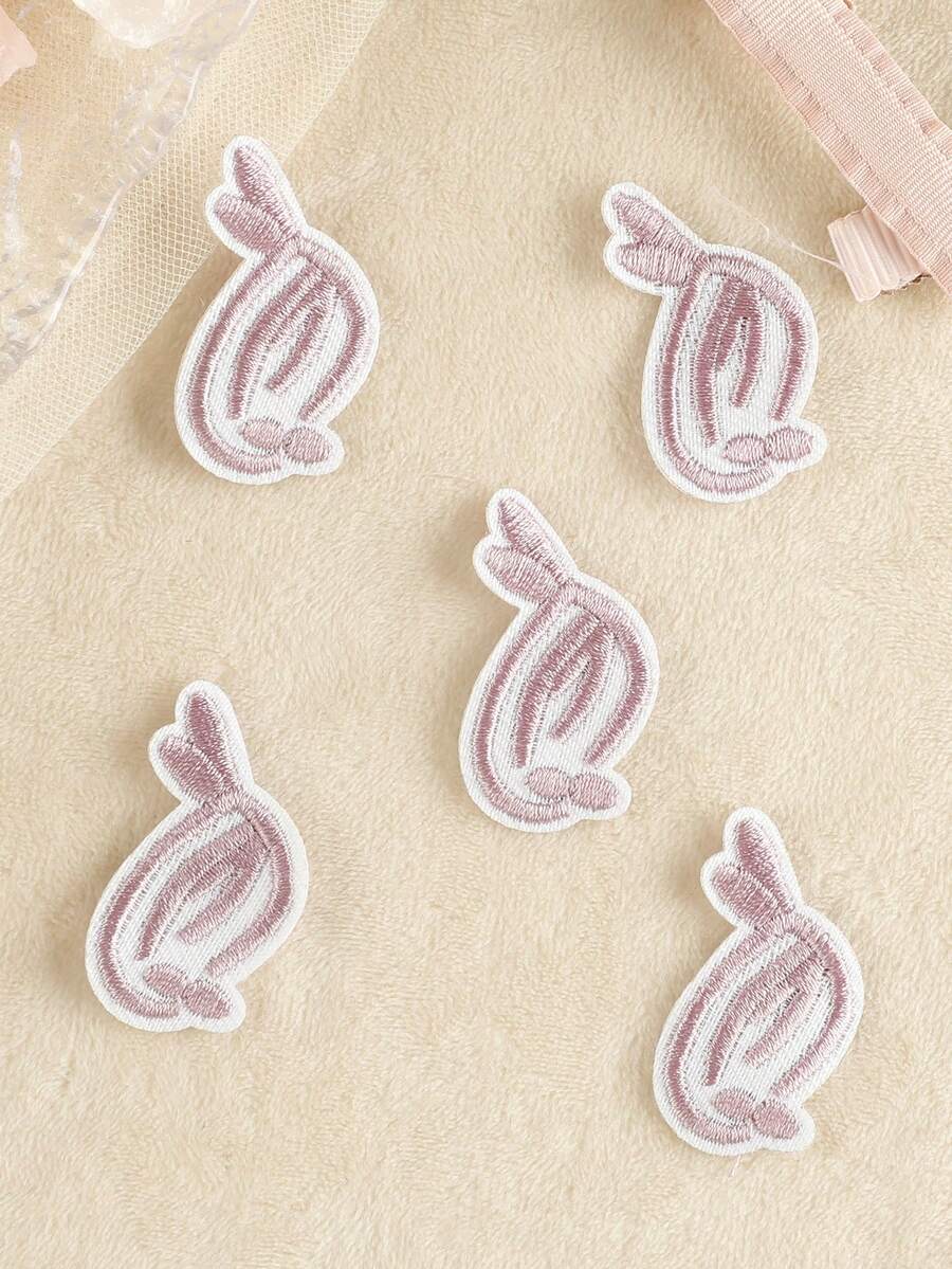 1set/5pcs Embroidered Cloth Patch For Clothing, Hat & Accessory Diy Handwork Without Adhesive Back, Rabbit Design