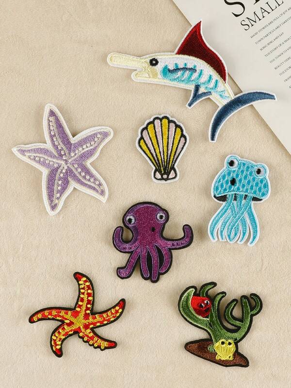1set/7pcs Embroidered Starfish Iron-On Patch, Clothing Hat Accessory Diy Decoration