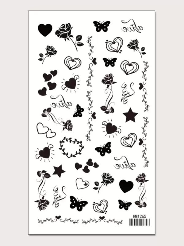 1sheet Heart & Flower Pattern Tattoo Sticker Black Friday