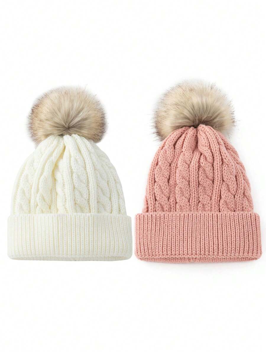2 Children's Small Twist Single Wool Ball Knitted Hat Set