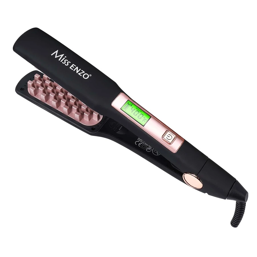 2 In 1 Ceramic Flat Iron & Hair Curler For Voluminous Hair, Temperature Adjustable, Auto Shut-Off, Durable Heat Protection, Suitable For Thick & Curly Hair Hot Comb