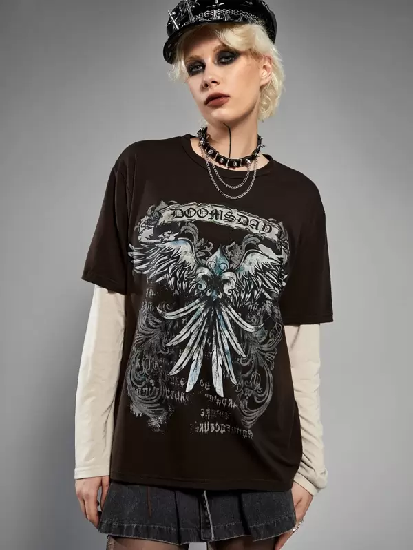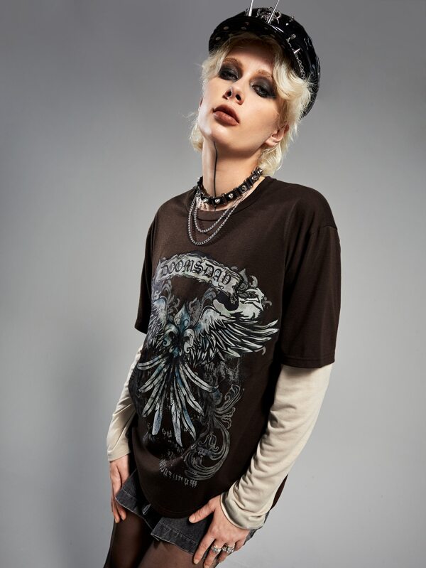 ROMWE Grunge Punk 2 In 1 Letter Graphic Tee