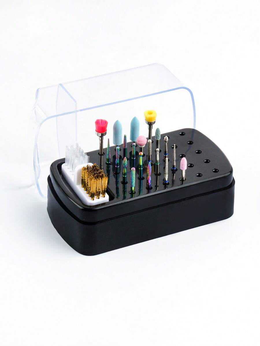 2 In 1 Nail Drill And Polish Head Organizer &1Pc Dustproof Makeup Organizer & Portable Nail Drill Organizer With Cleaning Brush & 30 Hole Nail Polish Head Organizer & Nail Tool Organizer