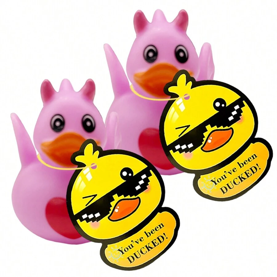 2 PCS Valentine's Day Rubber Ducks With 2 PCS Tags, 2 PCS Rubber Bands, Showers Accessories,Mini Duckies Bath Toys Valentines Party Favors