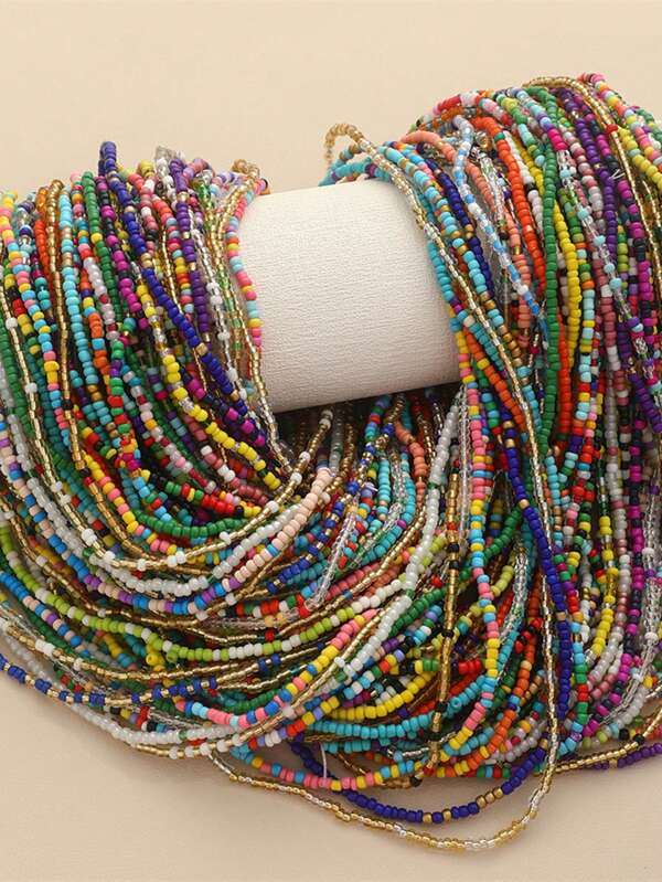 2 Piece 1 Package,Boho Style Colorful Acrylic Beads Chain Waist Chain Belly Chain Random Color Body Jewelry