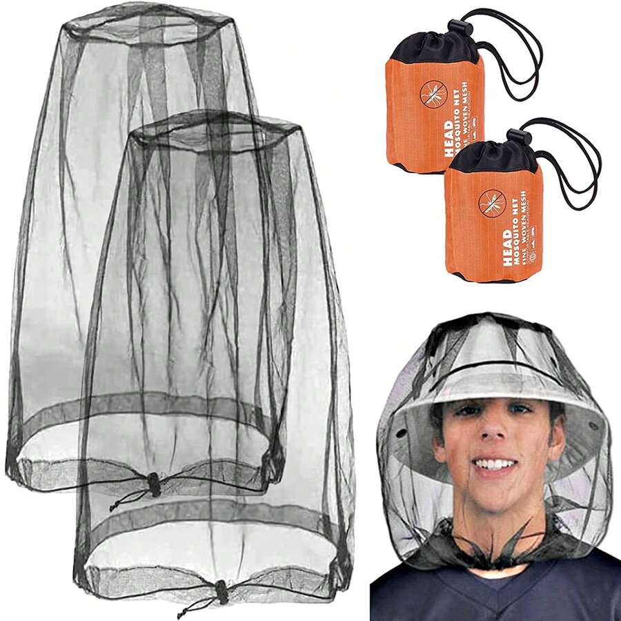 2 Pieces Mosquito Head Net, Fishing Hat,Nylon Face Net Mesh,Mesh Bug Net For Outdoor Hiking Camping Climbing Fishing And Walking(Black)