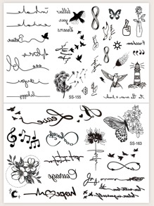 2 Sheets Black Butterfly, Flower, Words, Lines Temporary Tattoo Stickers For Fingers, Ears, Wrists, And Other Small Body Parts, Fashionable And Personalized Black Friday