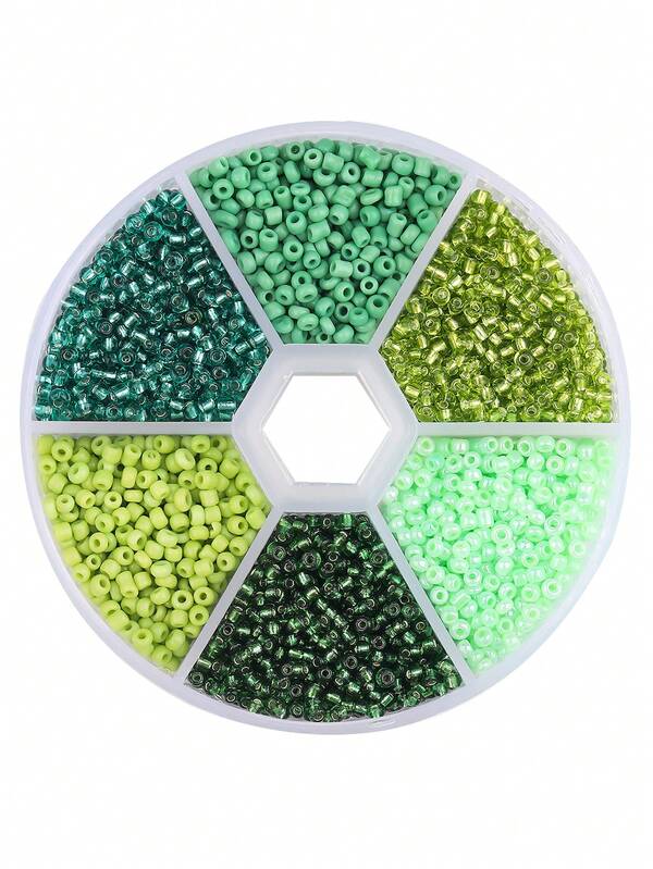 2/3mm 6-Compartment Box Packed Green Glass Seed Beads For Earring, Bracelet, Necklace, Phone Charm And Decoration Making