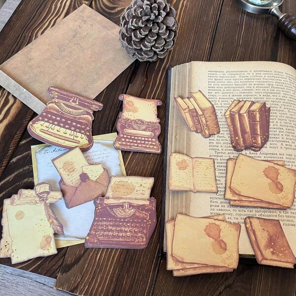 20 Sheets Vintage Coffee-Stained & Gold Foil Detail Scrapbooking Sticker Pack