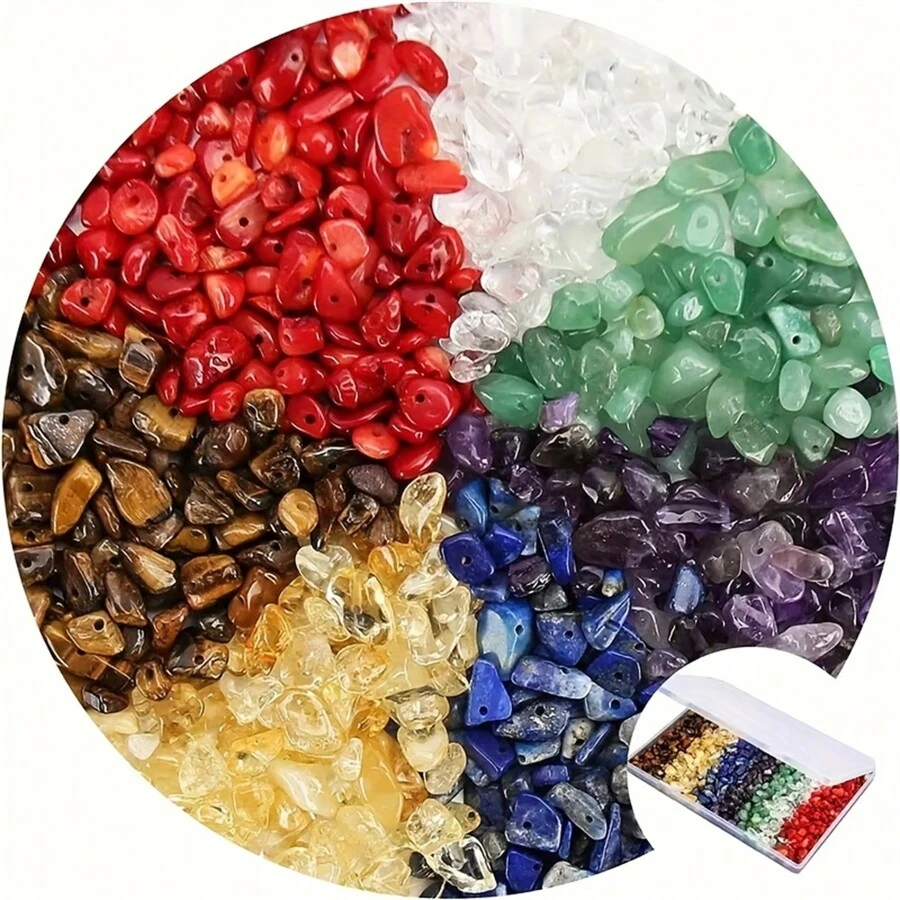 200pcs Natural Chip Stone Beads, 5-8mm Irregular Multicolor Gemstones Loose Crystal Healing Chakra Rocks With Hole For Jewelry Making DIY Crafts Crystal Gift(7 Chakras And Borehole)