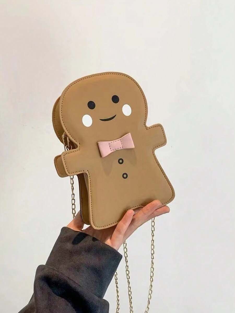 2023 New Fashion Alien Bag Cute Cartoon Gingerbread Man Shoulder Bag, Crossbody Bag Solid Color PU Waterproof Fabric Lightweight And Portable Suitable For Campus Use