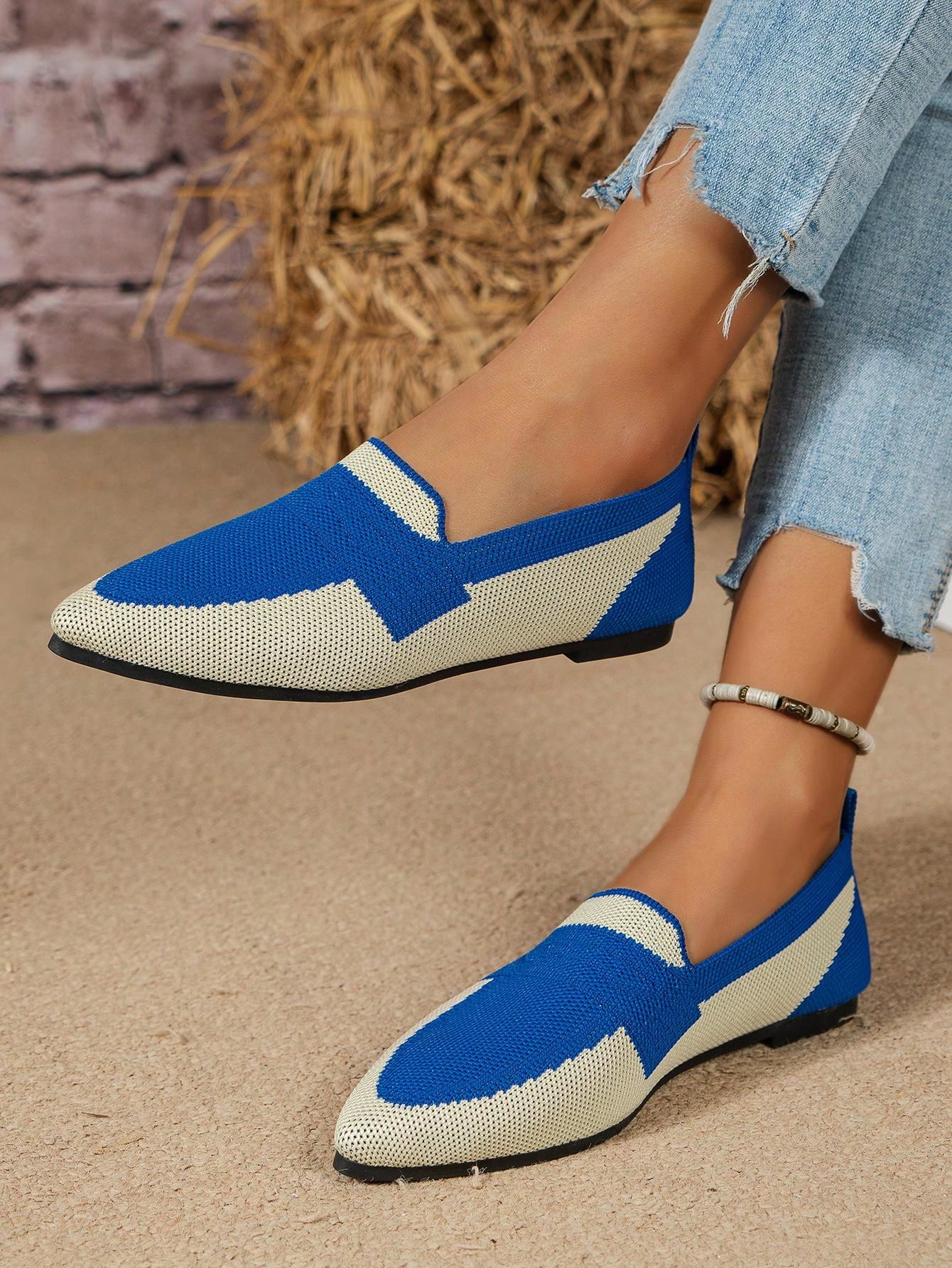 2023 Spring Summer Fashionable And Breathable Knitted Pointed Toe Flat Loafers For Women