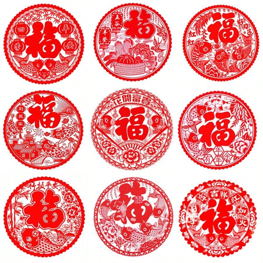 2024 Chinese New Year Paper Cuttings Colorful Chinese New Year Window Decoration Electrostatic Paste Chinese New Year Shopping Mall Window Decoration Chinese New Year Blessing Door Paste Glass Sticker (1 Package Of 20 Pieces)