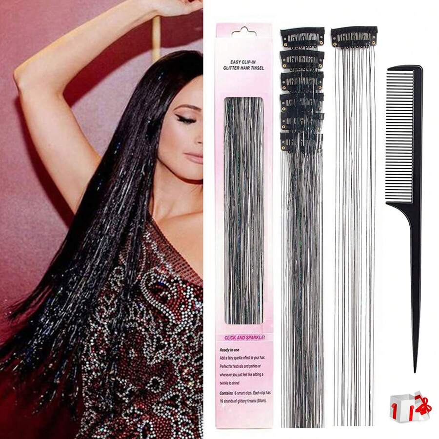 20Inch Clip In Hair Tinsel Extensions Hair Tinsel, 6pcs Highlights For Hair Each Pack Multi-Colors Synthetic Hair Extensions For Party, Christmas, New Year, Halloween, Cosplay
