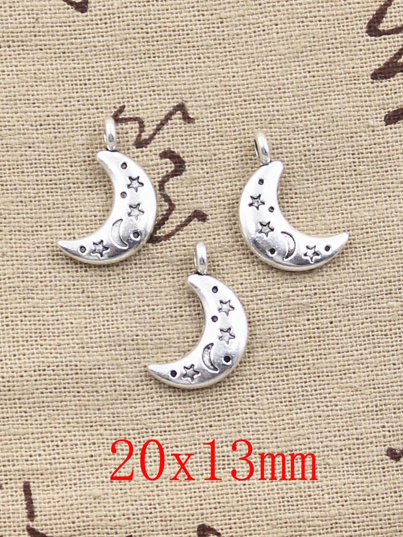 20Pcs Charms Moon Star Silver Color Pendants Antique Making Handmade Crafts DIY Jewelry