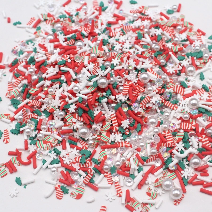 20g Christmas Themed Polymer Clay Slices With Mixed Soft Ceramic Beads For Diy Jewelry Making Accessories