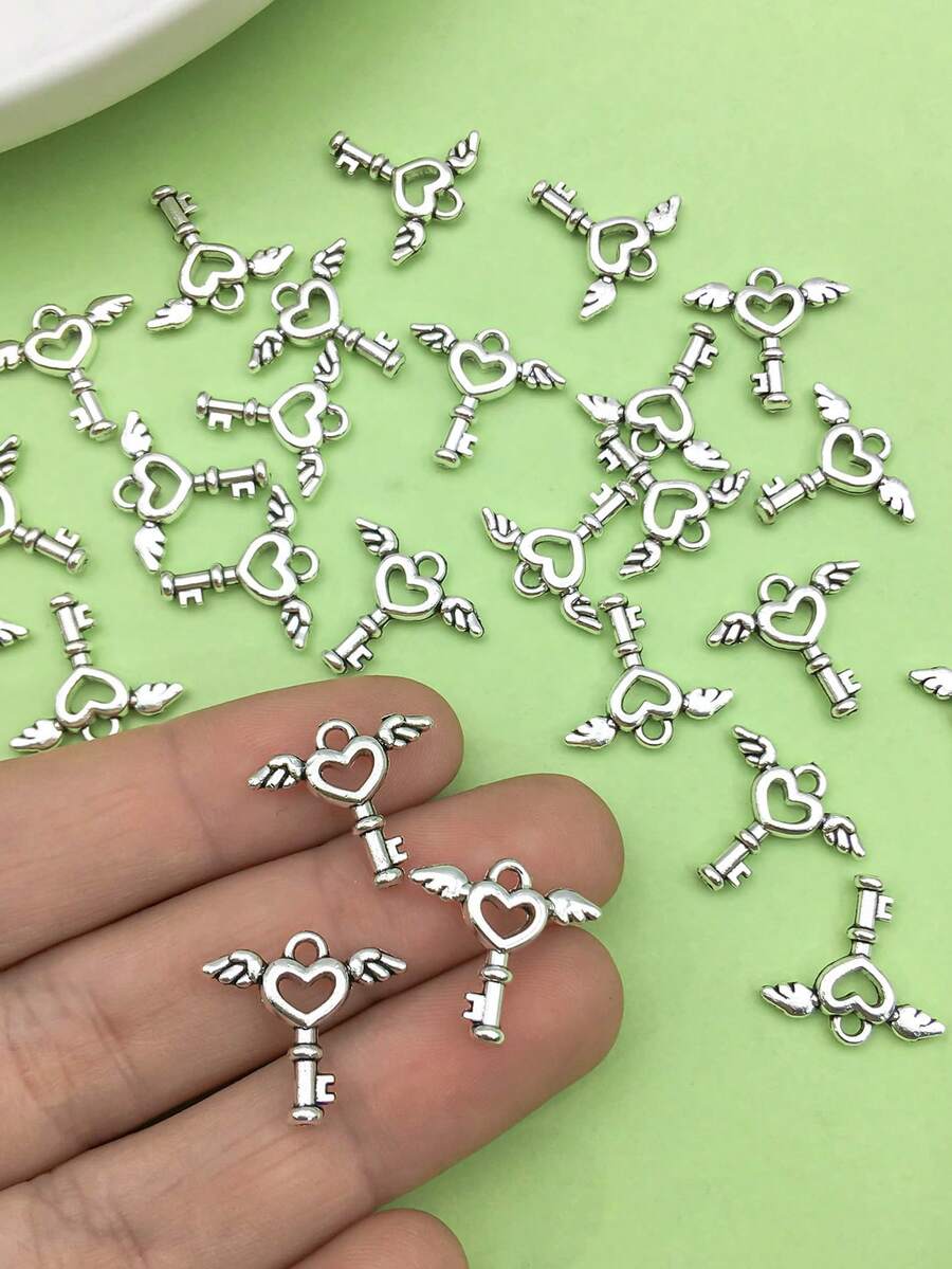 20pcs Antique Silver Alloy Love Key Lock Charm DIY Love Wings Small Pendant For Bracelet Earrings Necklace Jewelry Making Accessories Jewelry Supplies
