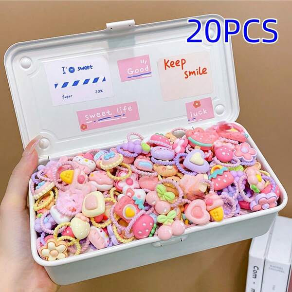 20pcs Cute Cartoon Flower & Cherry Decor Girls' Hair Ties