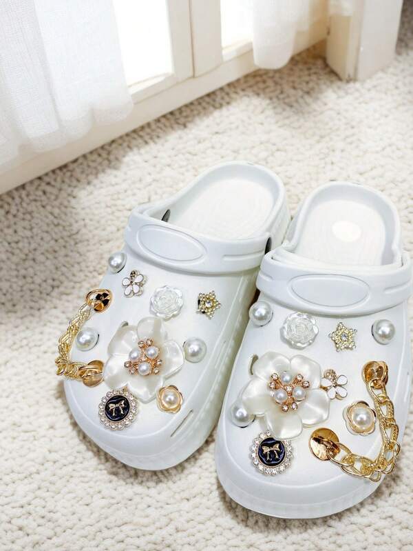 20pcs Decorative Buckle Shoe Decoration For Hole Shoes, Detachable Vintage Diy Faux Pearl Flower Garden Shoe Chain, Handbag Accessory