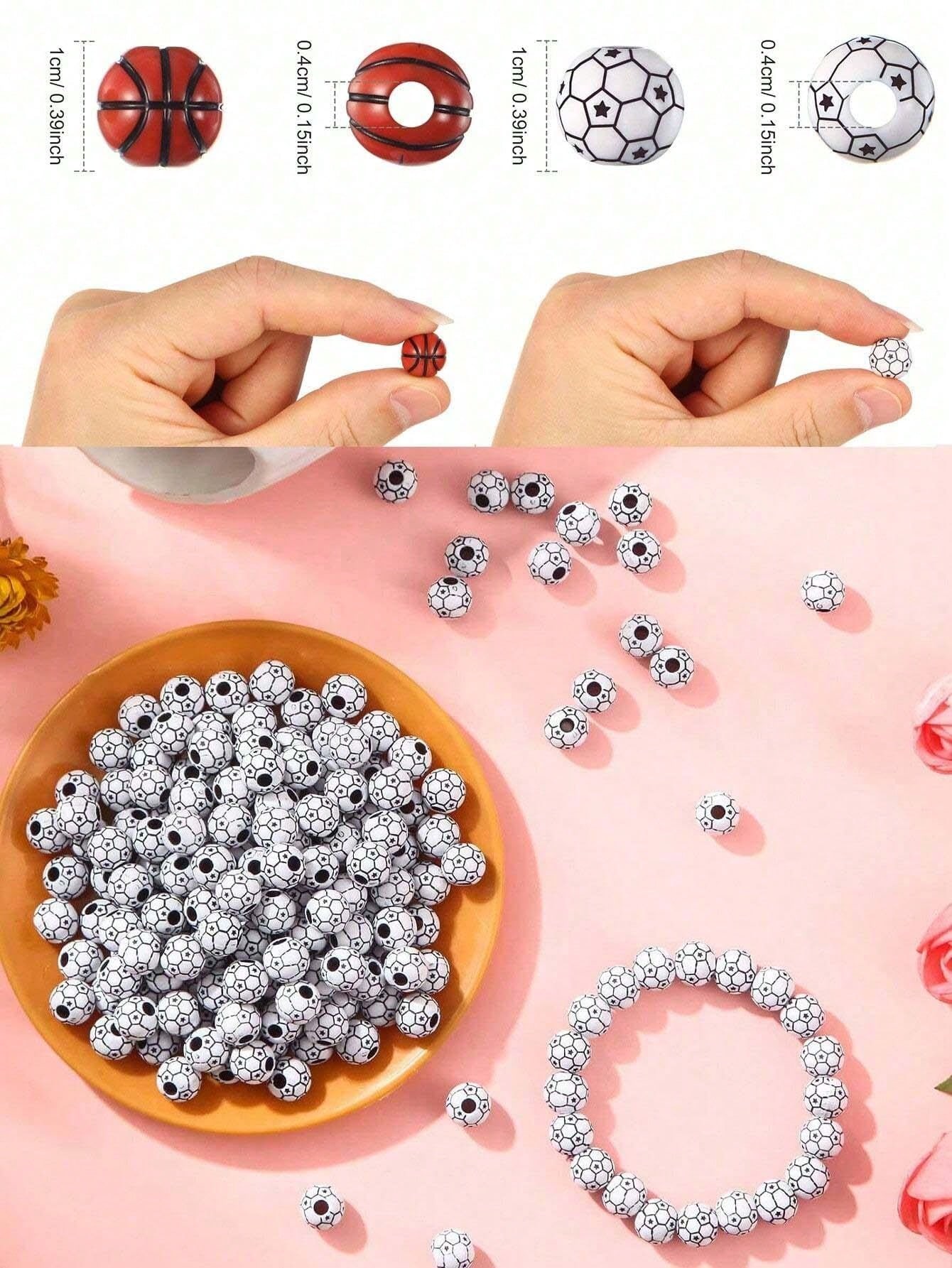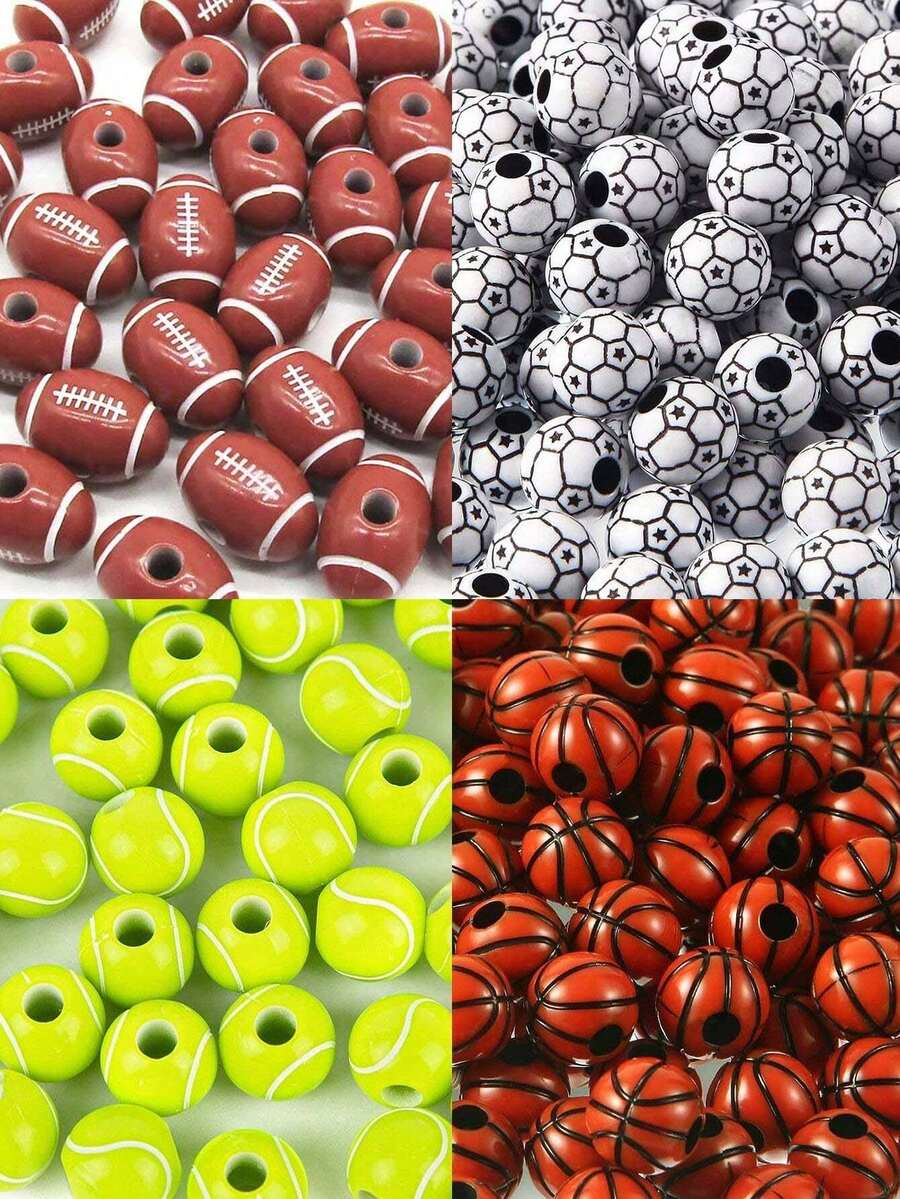 20pcs Fashionable Acrylic Beads For Basketball, Football, Baseball, Tennis Themed Bracelet Making, Suitable For Daily Fashion Matching And Festival Gifts