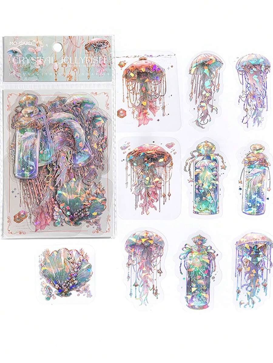 20pcs Ice Crystal Pet Sticker Pack With Jellyfish Pattern, 3d Laser Silver Gukka Sticker, Notebook Sticker