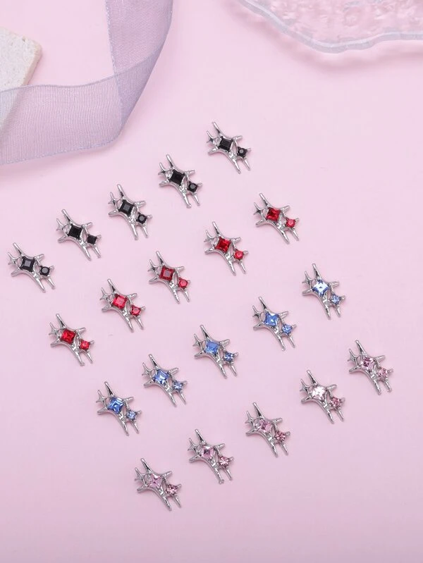 20pcs Mixed Shape Alloy Nail Art Decoration With Star & Spike, Diy Manicure