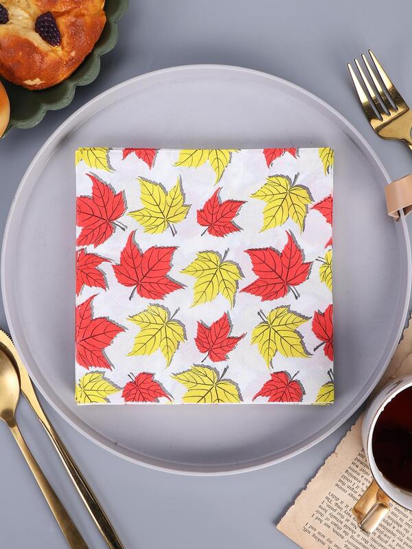 20pcs Paper Disposable Napkin, Creative Maple Leaf Pattern Disposable Napkin For Party