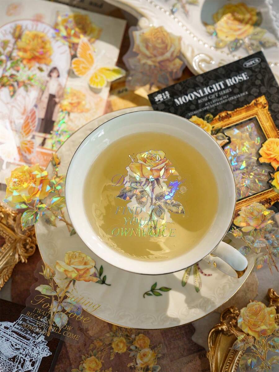 20pcs Pet 3d Laser Sticker Pack, Rose Gift Series, Diy Decoration & Collage Material For Bullet Journal