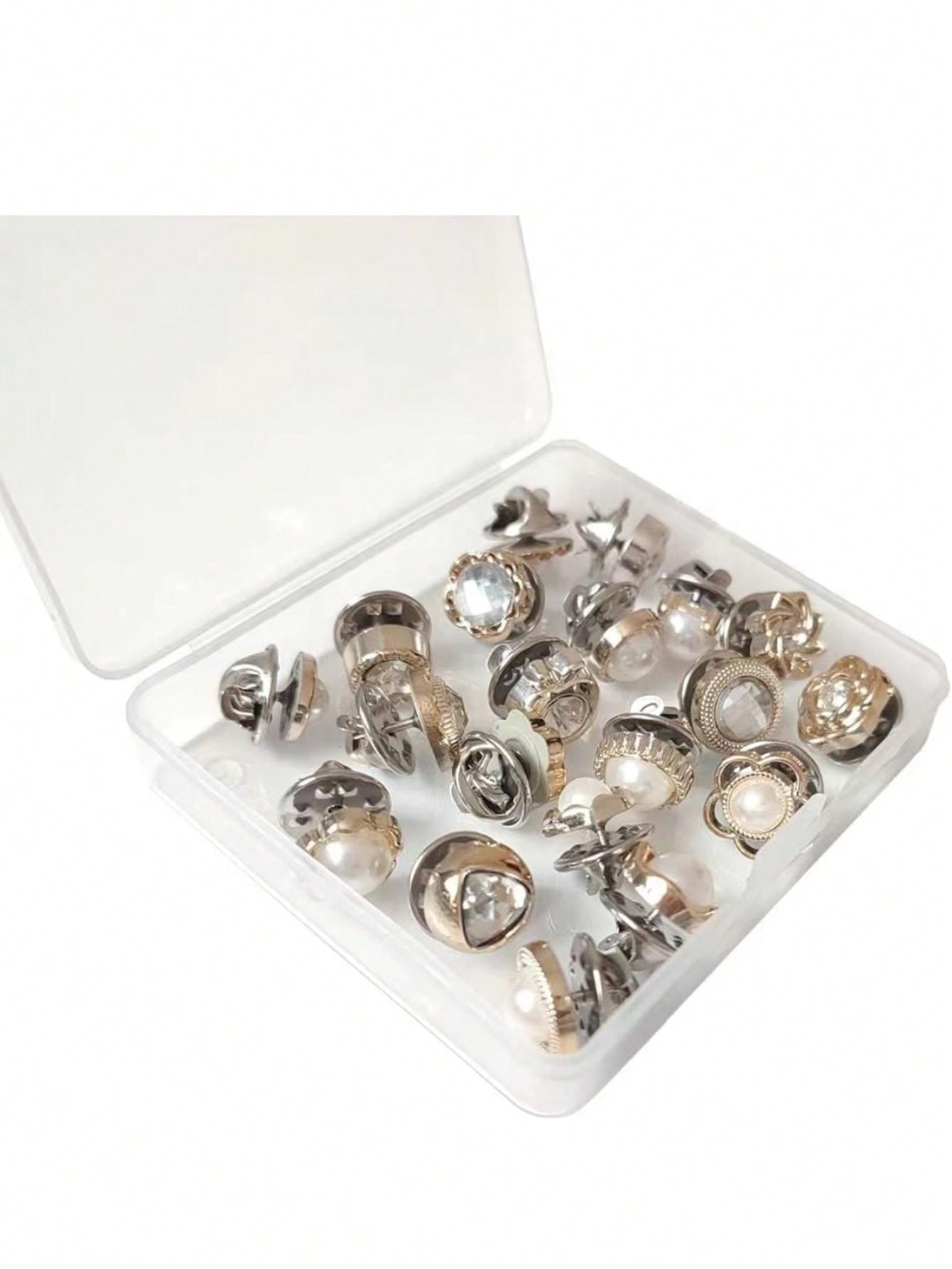 20pcs WoMen' Shirt Button Pins Set, Pearl & Rhinestone Decor Mini Brooches, For Daily Outfits