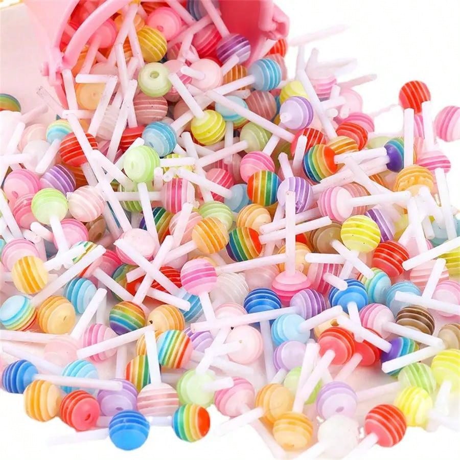 20pcs/50PCS 6mm Nail Mini Colorful Resin Lollipop Simulation Jewelry Accessories, Candy Nail Charms, Phone Case Resin Decoration ((Color Random)