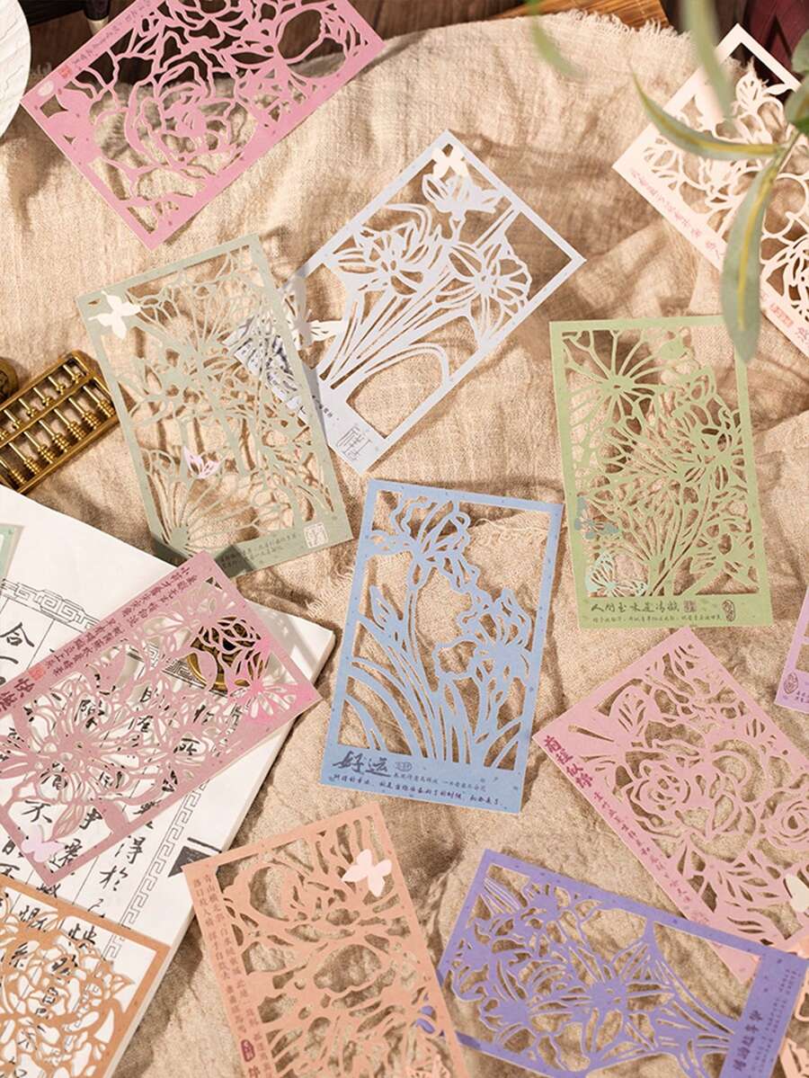 20pcs/Pack Hollow Out Material Paper, Flower Artistic Series, Tearable Basic Paper For Vintage Style Stationery Diy