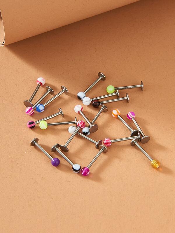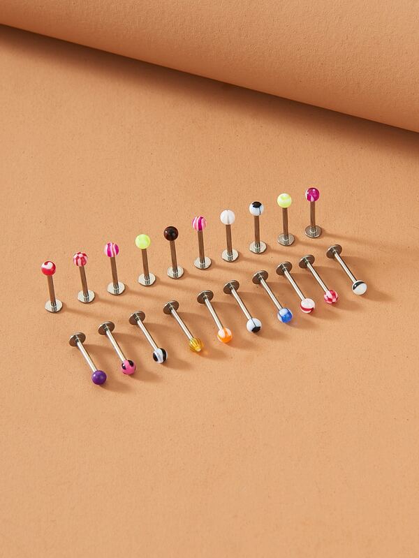 20pcs/set Random Color Labret Lip Ring Stainless Steel Fashion Punk Perfect Piercing For Women & Men Body Jewelry Gift