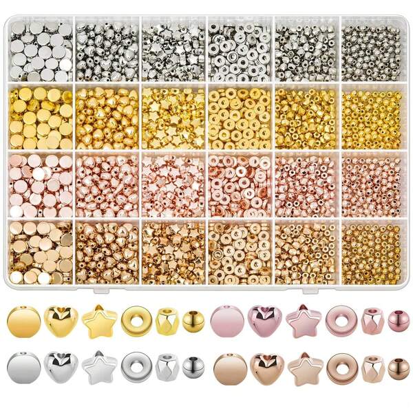 2160pcs Gold Spacer Beads Kit, Round Star Gold Beads For Bracelet Jewelry Making(Gold, Sliver, Rose Gold, KC Gold)