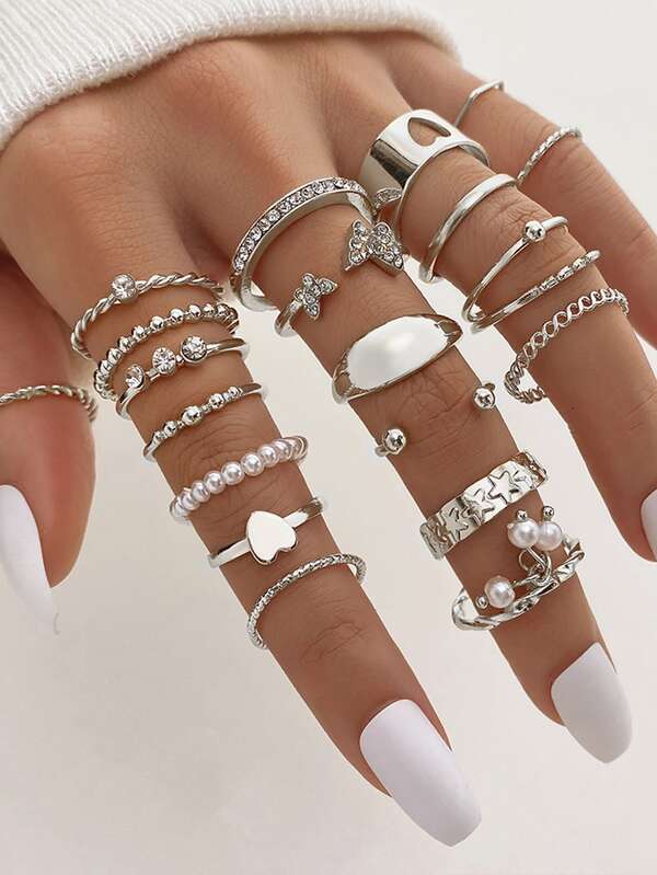 21pcs/set Luxury Hollow Out Heart & Butterfly Design Simple Personality Rings Set