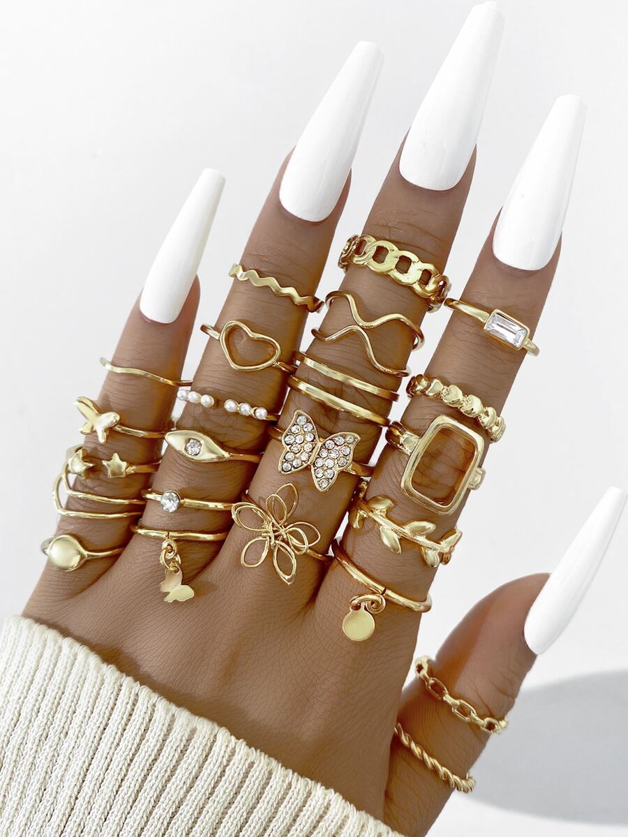 23pcs Rhinestone Butterfly & Heart Decor Ring