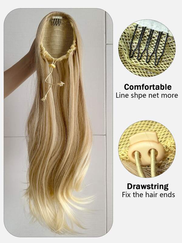 24 Inch Ponytail Extension Claw Curly Hair Piece Synthetic Pony Tail Hair Heat-Resisting(Golden Gradient)