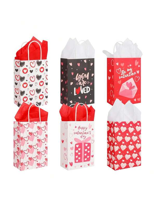 24 Pack Valentine'S Day Paper Gift Bags With Tissue Paper Red Pink Heart Love Candy Present Bags With Handle For Wedding And Valentine Party Favors Gift Wrapping