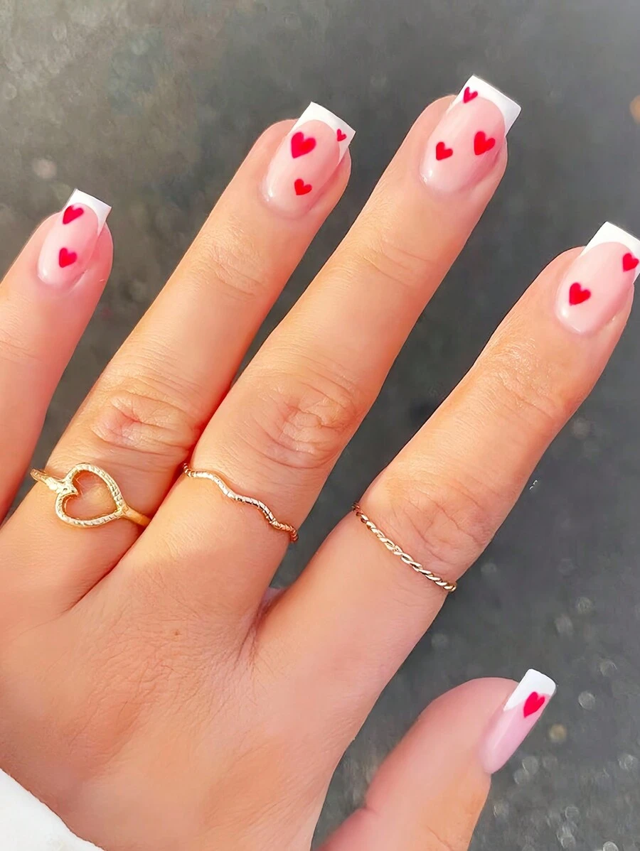 24pcs European And American Style Square False Nails With Romantic Red Heart Shaped Decoration (For Valentine'S Day)
