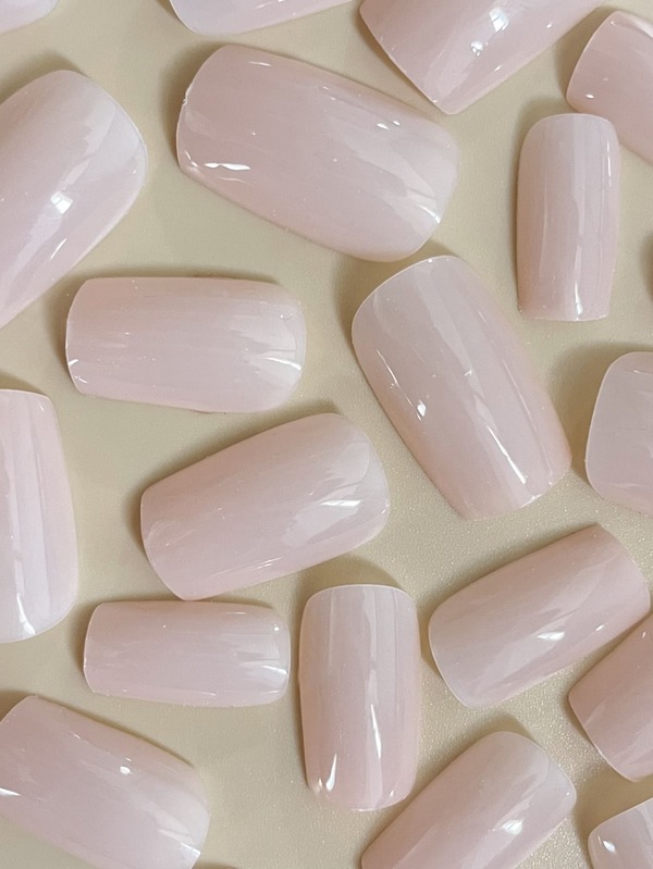 24pcs Short European-style Pink False Nails With 1pc Nail File & 1pc Jelly Glue
