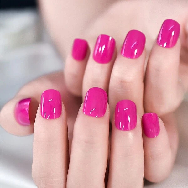 24pcs Solid Purple Fashionable Press-On Fake Nails For Diy Nail Art With Double-Sided Adhesive And Mini Nail File