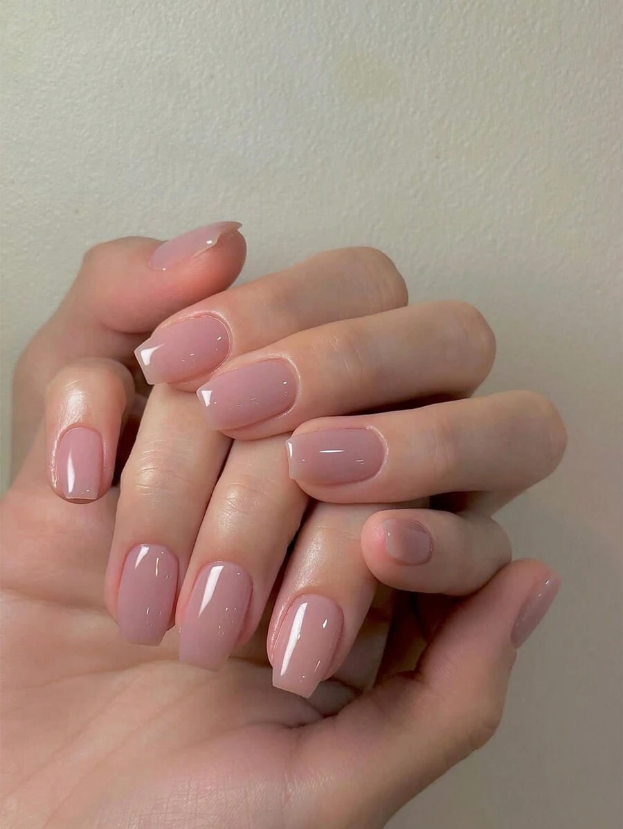 24pcs short square fake nails Solid color French design short square tips fake nails simple style quality art nail press ons handmade for women and girls