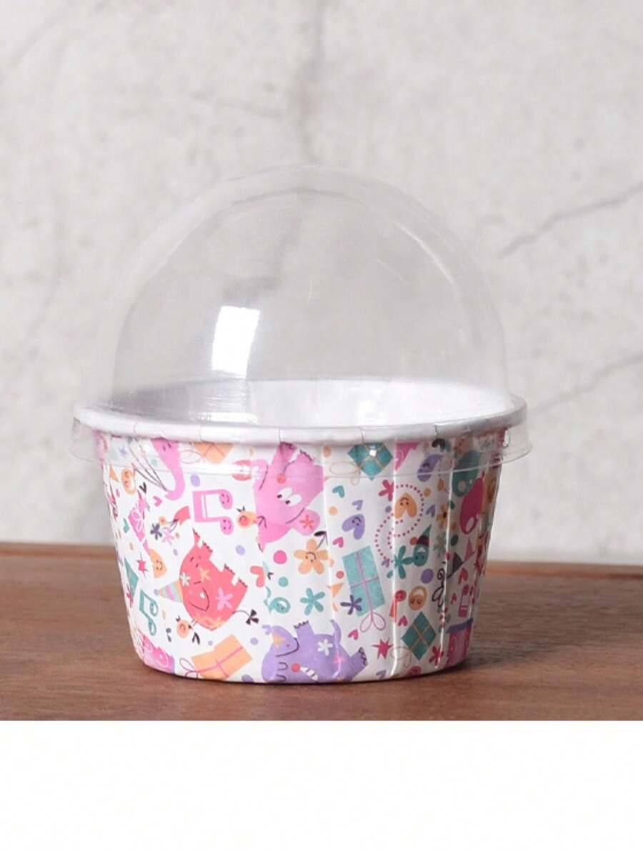 25 Medium Cake Paper Cups With Lids, Colorful Printed Oil-Proof Chocolate Cake Paper Trays, Muffin Cups With Rolled Tops, Coated Paper Cup Trays, Small Cake Cup Molds Diy High Temperature Resistant Oven Baking Tools