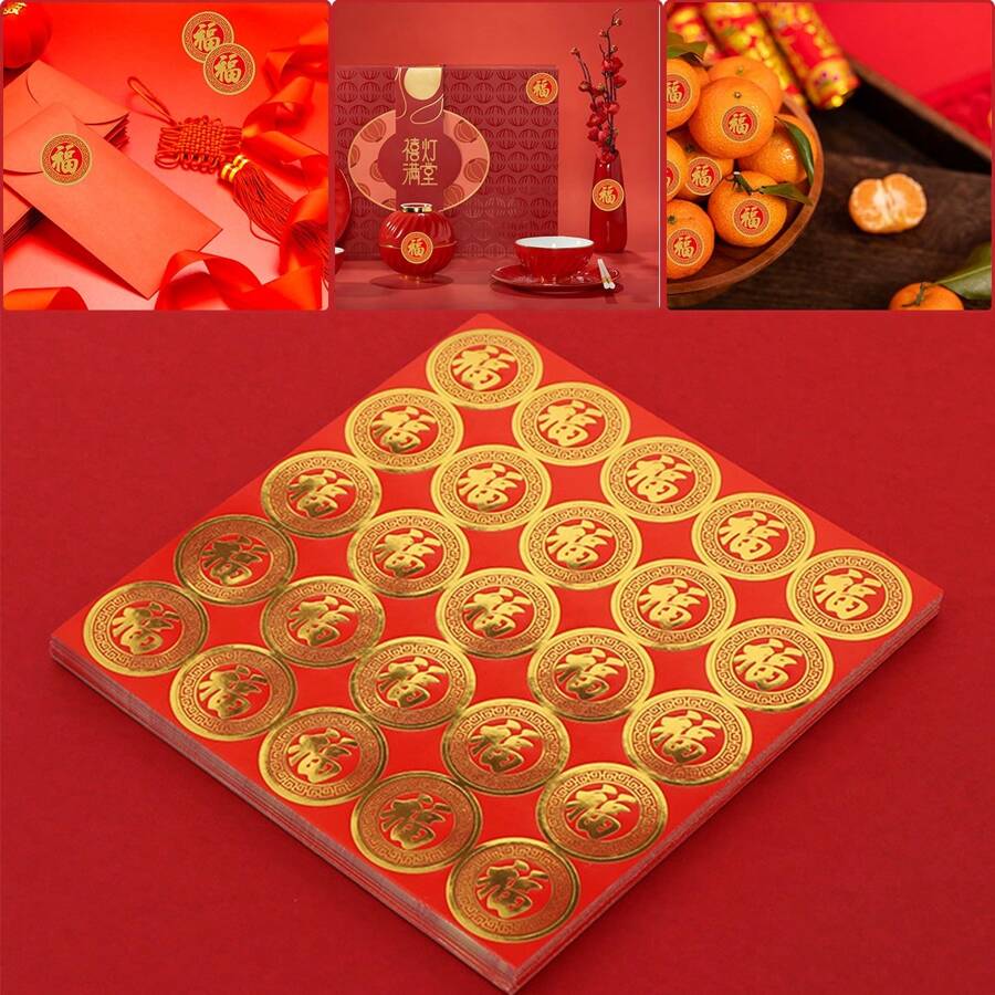 250PCS Lucky Chinese Fu Character Seal Stickers Chinese New Year Stickers Adhesive Gift Label Spring Festival Party Favor For DIY Crafts Card Red Envelope (10 Sheets)