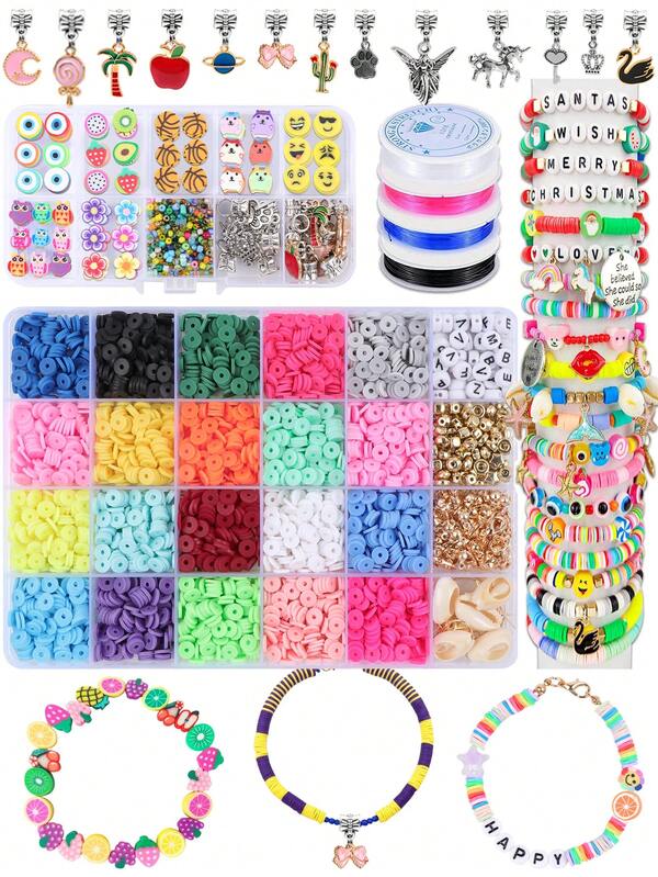2540pcs Bracelet Making Tool Kit Package With Polymer Clay Tools, Beading Supplies, Flat Round Polymer Clay Disc, Black Lava Stone Beads For Diy Project And Festivals Like Birthday, Thanksgiving, Christmas, New Year Gifts